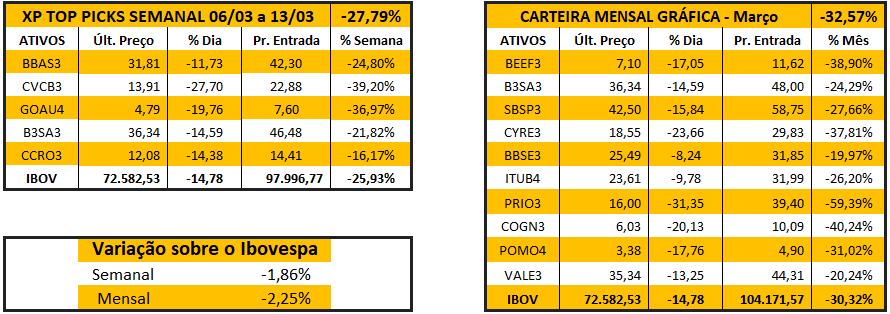 12/03/2020 A Arena do Investidor da XP Investimentos é o melhor local para você acompanhar lives, acessar relatórios e encontrar análises e recomendações de ações, opções, mini contratos e visões como um todo do mercado de renda variável. Resumo dos dias 11 e 12 de março de 2020 SWINGTRADE em andamento SWINGTRADE encerrados CARTEIRAS Semanal […]