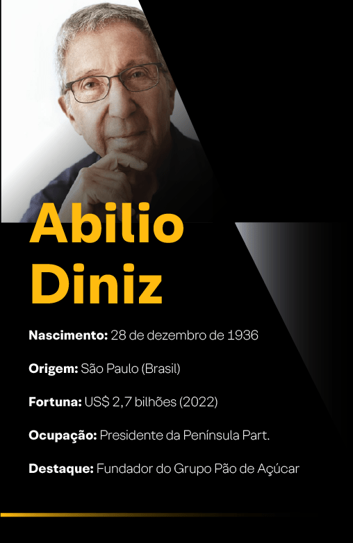 Em 2022, a fortuna do empresário Abilio Diniz foi estimada pela revista Forbes em US$ 2,7 bilhões.
