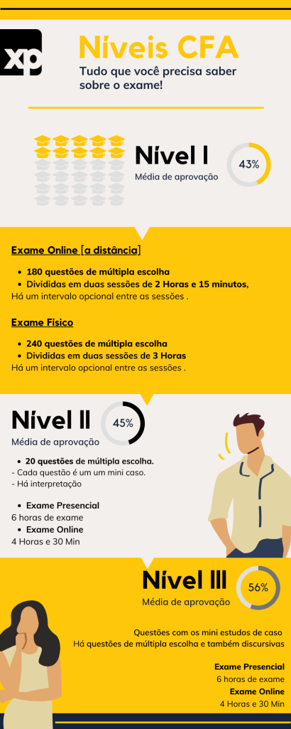 Para pensar em ser CFA, é possível se candidatar ao exame Level 1 a partir do último ano de uma graduação de bacharelado. Para o Level 2, é preciso já ter o diploma da universidade em mãos antes do registro. E para chegar ao Level 3, é necessário ter experiência profissional de pelo menos 4 anos.