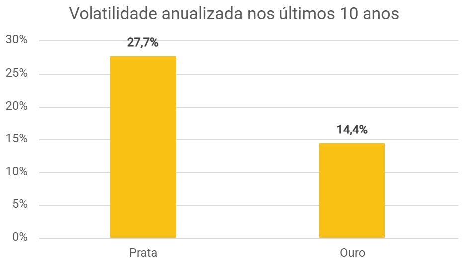 Por isso, como destacamos antes, isso torna a prata um ativo mais volátil comparado a outros metais.