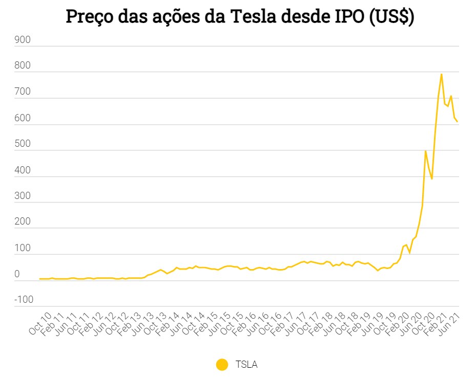 O modelo de produção verticalizado, produzindo a maioria das suas peças, faz com que o modelo da Tesla seja extremamente lucrativo. Por isso, as ações da empresa são uma das queridinhas do mercado, e acumulam valorização de quase 13.000% desde seu IPO (Oferta Pública Inicial) em 2010.