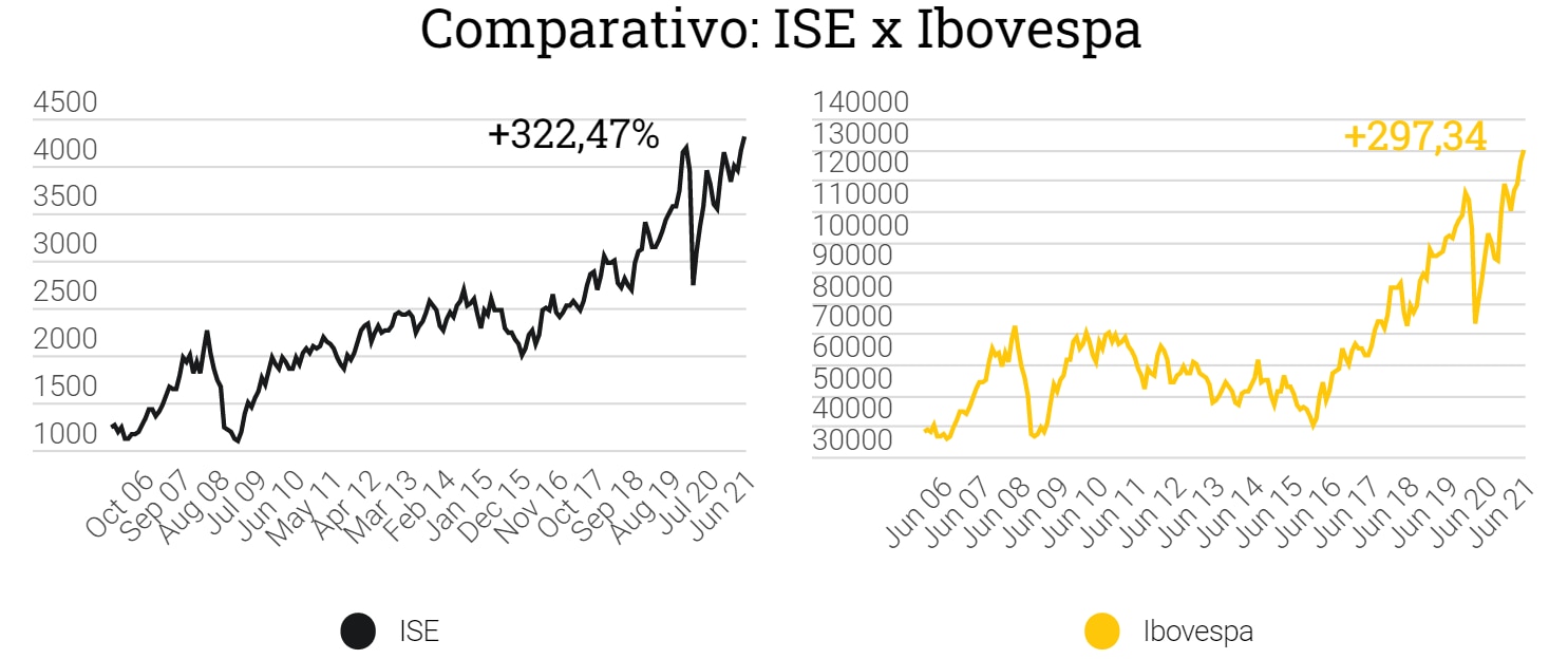 O Índice de Sustentabilidade Empresarial (ISE) é responsável por avaliar a sustentabilidade das empresas listadas na Bolsa de Valores brasileira (B3), baseado em eficiência econômica, equilíbrio ambiental, justiça social e governança.