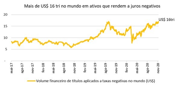 Existem mais de US$ 16 trilhões no mundo em ativos que rendem taxa negativa. Em uma hipótese de nova desaceleração global, medidas de estímulo econômico, como cortes de taxas de juros e programa de compra de ativos, se tornariam cada vez menos eficientes, dado o nível atual de juros globalmente e tamanho dos balanços dos bancos centrais pelo mundo.