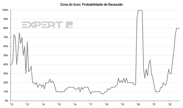 A economia europeia ainda deve encontrar desafios em 2023, com a continuação da guerra na Ucrânia, a crise energética longe de ser resolvida, condições financeiras em níveis ainda restritos e expectativas de um crescimento econômico global fraco. Segundo a Bloomberg, o mercado atribui uma probabilidade de 80% para uma recessão econômica na Zona do Euro, muito maior do que os 65% para os EUA.