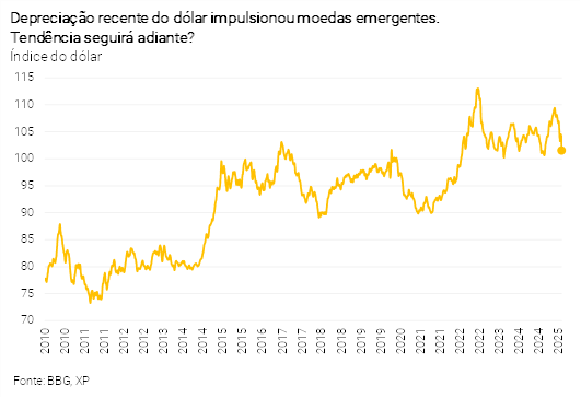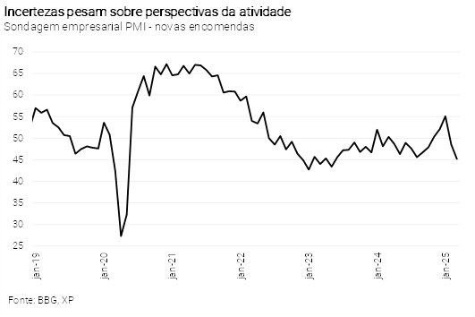 Globalmente, o principal debate é se o forte aumento das tarifas comerciais nos EUA e suas consequências geopolíticas levarão a economia mundial a uma recessão. O impacto deste cenário para o dólar, os preços das commodities e as moedas emergentes é difícil de prever.