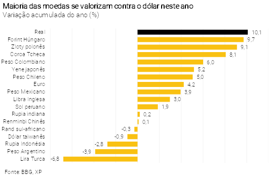 Primeiramente, os efeitos de uma recessão global sobre o dólar americano ainda são incertos. Uma guerra comercial pode intensificar a aversão global ao risco, levando a uma busca por ativos considerados seguros, como o ouro e o próprio dólar. Nesse cenário, ativos de mercados emergentes, incluindo moedas, podem sofrer.