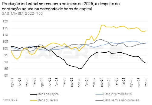 Economia brasileira ganhou tração no início de 2026. Os dados de produção industrial, vendas varejistas e receitas de serviços trouxeram sinais positivos nos primeiros meses do ano. Por exemplo, a indústria de transformação interrompeu a trajetória cadente vista no final de 2025, em que pese a contração acentuada na categoria de bens de capital, enquanto a indústria extrativa registrou expansão significativa na esteira da maior produção de petróleo. Com isso, estimamos aumento de 1,0% para o PIB no 1º trimestre de 2026 em comparação ao 4º trimestre de 2025, uma aceleração relevante após a estabilidade registrada no segundo semestre do ano passado.