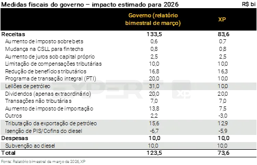 Melhora decorrente do petróleo pode trazer falsa sensação de que os problemas fiscais foram equacionados. O ganho de arrecadação oriundo dos preços do petróleo mais elevados abre espaço para aumentos de despesas em 2026. O governo já anunciou medidas como subvenção ao diesel e a redução de alíquotas de PIS/Cofins e outros impostos para mitigar os impactos do choque externo. As medidas anunciadas têm caráter temporário e efeitos limitados, mas podem ser estendidas se a crise perdurar. O governo poderia inclusive acionar um estado de emergência por meio de decreto legislativo para retirar despesas da meta (lembrando que já são excluídas do limite de gastos por serem créditos extraordinários), repetindo o que houve com a calamidade pública no Rio Grande do Sul em 2024.