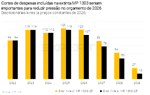 Caducidade da MP 1303/25 complica situação para 2026. As medidas de aumento de arrecadação contidas na MP 1303/25, cuja validade expirou, tinham potencial de arrecadação estimado em R$ 20 bilhões. Para contornar esse problema, o governo tem optado por aprovar as medidas menos controversas, como a limitação de compensações, o aumento de alíquotas de CSLL para fintechs e de imposto de renda para Juros sobre Capital Próprio (JCP), por meio de projetos de lei. Com efeito, incorporamos essas mudanças em nossa projeção e esperamos agora déficit de R$ 61,6 bilhões em 2026 (0,5% do PIB), contra um déficit de R$ 58,3 bilhões (0,4% do PIB) anteriormente. Para fins de atingimento da meta, nossa projeção passou para déficit de R$ 11,8 bilhões (0,1% do PIB), ante R$ 8,5 bilhões (0,0% do PIB) no último mês. Assim, para cumprimento do limite inferior da meta (zero), ainda são necessários esforços adicionais de aumento de receita e/ou corte de despesas (contingenciamento).