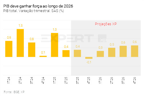 Expectativa para o PIB de 2026 segue em 1,7%, mas há viés de alta. Os juros continuarão em patamares restritivos, em que pese o ciclo de flexibilização monetária previsto para o ano que vem. No entanto, o cenário de mercado de trabalho apertado persistirá, assim como estímulos fiscais e possivelmente parafiscais no ano de eleições gerais. Neste contexto, destaque para o impacto da isenção do Imposto de Renda para trabalhadores que recebem até R$ 5 mil/mês (e descontos para os que auferem até cerca de R$ 7,3 mil/mês). Nosso cenário base já incorpora um efeito líquido de 0,3 p.p. sobre o crescimento do PIB em 2026.