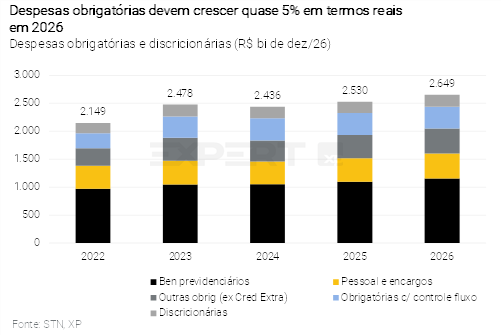 Despesas obrigatórias, por outro lado, estão subestimadas. Avaliamos que benefícios previdenciários e BPC/LOAS estão subestimados em R$ 3,8 bilhões e R$ 13,5 bilhões, respectivamente. Também vemos maior pressão por conta do fundo eleitoral, que foi encaminhado ao Congresso em nível bem menor do que o de 2024.