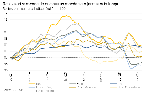 Um cenário alternativo, com recessão mais profunda e taxas de juros mais baixas nos EUA, traz implicações ambíguas para os ativos brasileiros. O real poderia continuar se valorizando, como nos últimos dias, ou sofrer com a aversão ao risco, como ocorreu logo após o “Dia da Libertação”. Ainda é cedo para cravar qualquer direção se este cenário se confirmar.