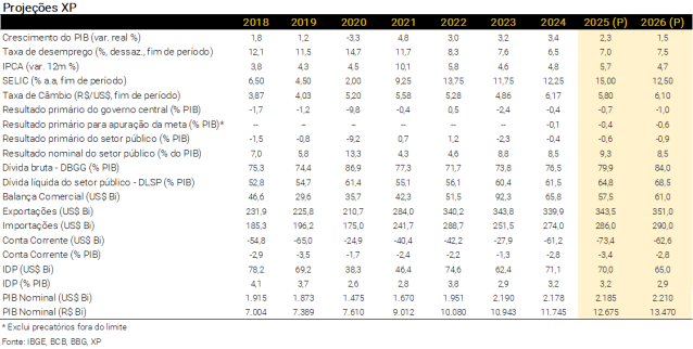 - No Brasil, a resiliência do mercado de trabalho e medidas governamentais reforçam nosso cenário de que a desaceleração da atividade será apenas gradual. Assim, projetamos que o PIB crescerá 2,3% em 2025 e 1,5% em 2026.