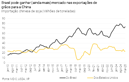 Maior exportação para a China. As economias latino-americanas tendem a se beneficiar da queda nas trocas comerciais entre China e EUA. O Brasil, em particular, é um forte candidato a substituir os EUA no fornecimento de grãos para a China. Por essa razão – e pelo fato de a economia brasileira não depender fortemente do comércio exterior (as exportações representam apenas 12% do PIB) – o país tem sido visto como um “vencedor relativo” na guerra comercial global.
