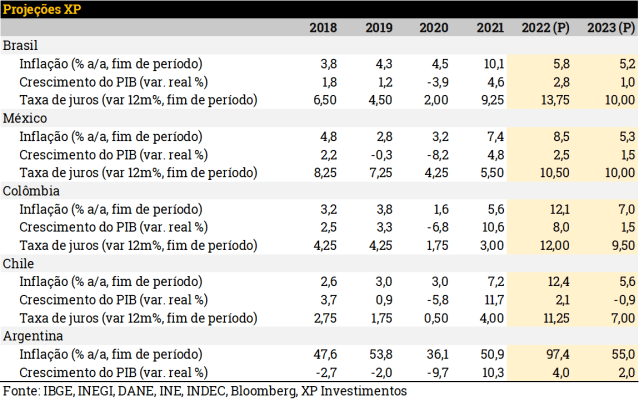 - Com o cenário doméstico e externo ainda incerto, a trajetória da política monetária na América Latina vai depender do processo de desinflação e das expectativas de inflação;