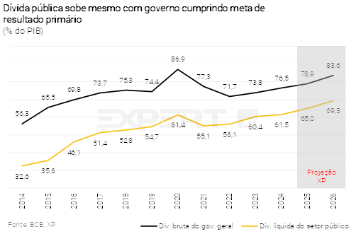 Discussões sobre o arcabouço fiscal devem ressurgir à medida que despesas discricionárias perdem espaço. Em nossa opinião, a regra fiscal vigente precisa de reformas urgentes, que recuperem a credibilidade do sistema de metas de resultado primário e do limite de despesas, em particular pela adoção de parâmetros de crescimento máximo da despesa abaixo do atual (2,5%), e que sejam combinados com reformas estruturais do lado do gasto. Projetamos que a Dívida Bruta do Governo Geral (DBGG) atingirá 78,9% do PIB e 83,6% do PIB ao final de 2025 e 2026, respectivamente.