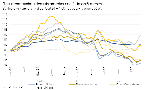 No entanto, riscos persistem. Do lado externo, é possível haver alguma reversão na desvalorização global do dólar se as incertezas geopolíticas voltarem a se intensificar. No Brasil, riscos fiscais podem tornar a dinâmica da dívida pública insustentável. Ademais, o balanço de pagamentos não está tão saudável como no passado recente e uma guerra comercial com os Estados Unidos é um risco relevante.