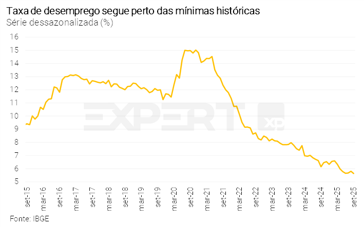 Os presidentes Lula e Donald Trump se reuniram e firmaram garantias para seguir uma agenda de negociações para chegar a um acordo comercial. Em relação aos indicadores de mercado de trabalho brasileiro, a taxa de desemprego permanece na mínima histórica, enquanto a criação de empregos segue robusta, mas com sinais de moderação.