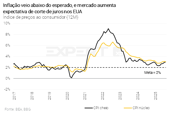 Nos Estados Unidos, inflação vem abaixo das expectativas, corroborando corte de juros