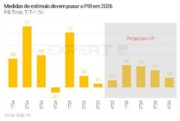 No Brasil, o PIB teve desempenho tímido no 3º trimestre. No entanto, houve revisões altistas na série, com destaque ao desempenho ainda mais forte da agropecuária no primeiro semestre. A incorporação dessas revisões aumentou nossa expectativa para o PIB de 2025, de 2,1% para 2,3%.
