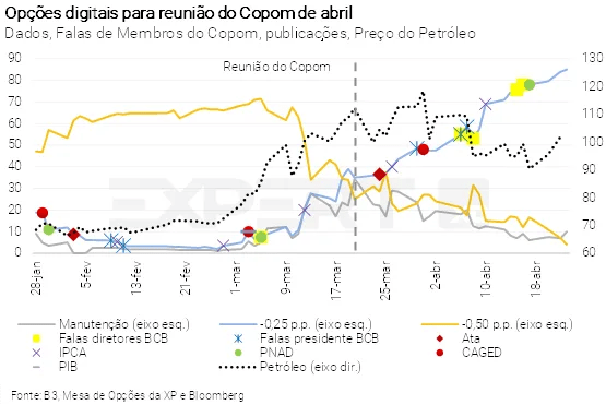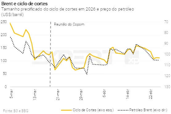 Mercado precifica 0,25 p.p. de corte nesta reunião; tamanho do ciclo segue correlacionado aos preços do petróleo