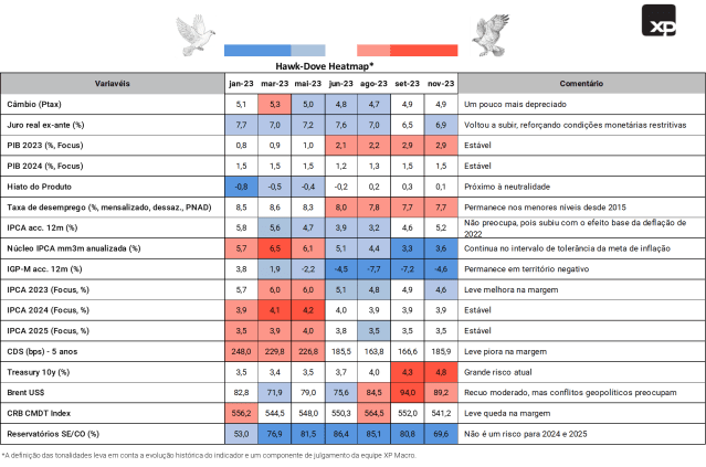 Hawk-Dove Heatmap: por um lado, juros mais altos nos EUA, por outro, leituras de inflação benignas
