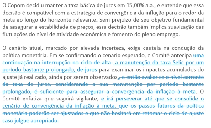 Em resumo, acreditamos que os dados e eventos econômicos recentes devem trazer confiança ao Copom de que as pressões inflacionárias mais agudas foram contidas, mas ainda há um longo caminho até que haja clareza sobre a convergência da inflação à meta de 3,0%.
