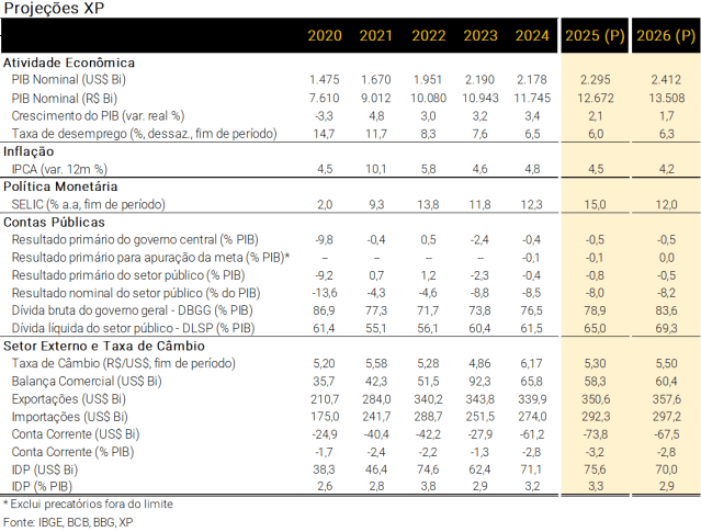 Confira aqui as projeções das principais variáveis macroeconômicas do time de Economia da XP!