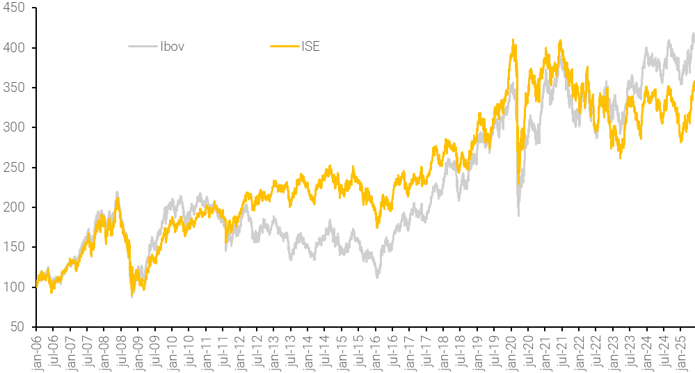 (1) O Índice ISE (Índice de Sustentabilidade Empresarial da B3) tem como objetivo ser o indicador do desempenho médio das cotações dos ativos de empresas com reconhecido comprometimento com o desenvolvimento sustentável, práticas e alinhamento estratégico com a sustentabilidade empresarial.