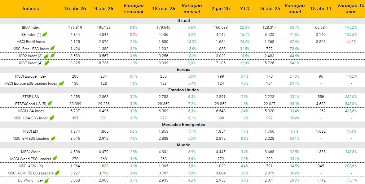 Índices ESG e suas performances