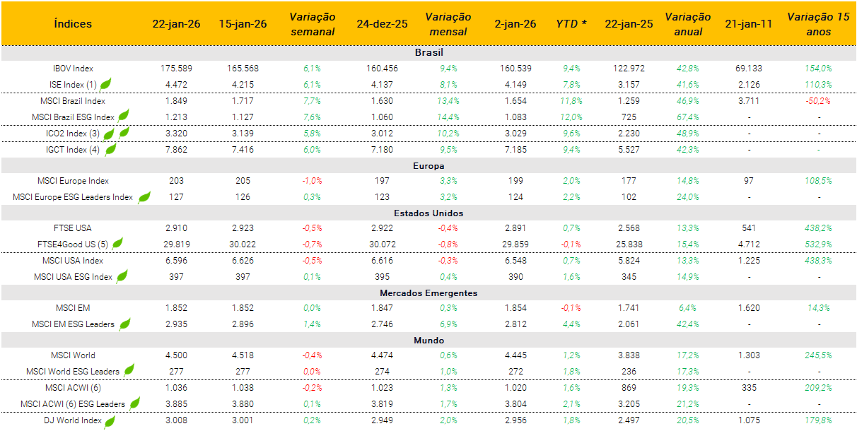 Índices ESG e suas performances