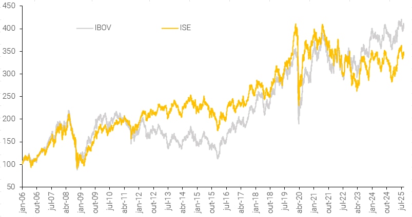 (1) O Índice ISE (Índice de Sustentabilidade Empresarial da B3) tem como objetivo ser o indicador do desempenho médio das cotações dos ativos de empresas com reconhecido comprometimento com o desenvolvimento sustentável, práticas e alinhamento estratégico com a sustentabilidade empresarial.