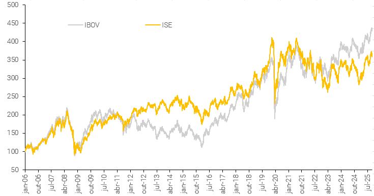 (1) O Índice ISE (Índice de Sustentabilidade Empresarial da B3) tem como objetivo ser o indicador do desempenho médio das cotações dos ativos de empresas com reconhecido comprometimento com o desenvolvimento sustentável, práticas e alinhamento estratégico com a sustentabilidade empresarial.