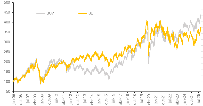 (1) O Índice ISE (Índice de Sustentabilidade Empresarial da B3) tem como objetivo ser o indicador do desempenho médio das cotações dos ativos de empresas com reconhecido comprometimento com o desenvolvimento sustentável, práticas e alinhamento estratégico com a sustentabilidade empresarial.