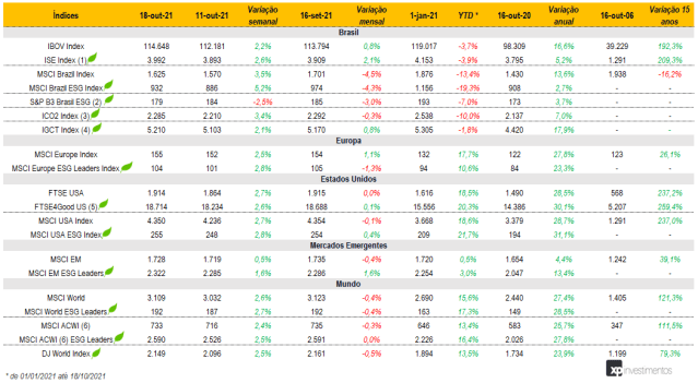 Índices ESG e suas performances