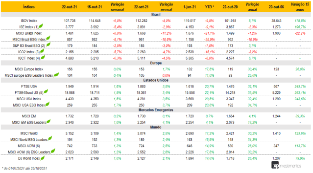 Índices ESG e suas performances
