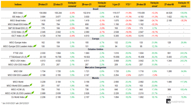 - Carteira ESG XP: Sem alterações em nosso portfólio para janeiro (link)