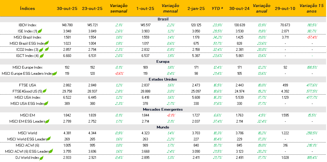 Índices ESG e suas performances
