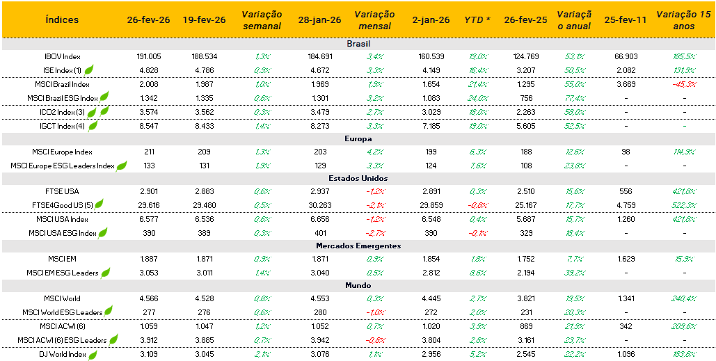 Índices ESG e suas performances