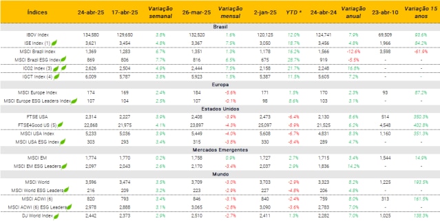 Índices ESG e suas performances