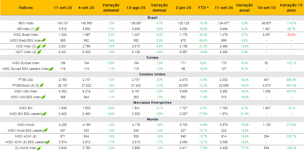 Índices ESG e suas performances