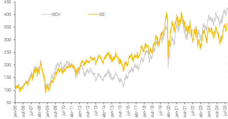 (1) O Índice ISE (Índice de Sustentabilidade Empresarial da B3) tem como objetivo ser o indicador do desempenho médio das cotações dos ativos de empresas com reconhecido comprometimento com o desenvolvimento sustentável, práticas e alinhamento estratégico com a sustentabilidade empresarial.
