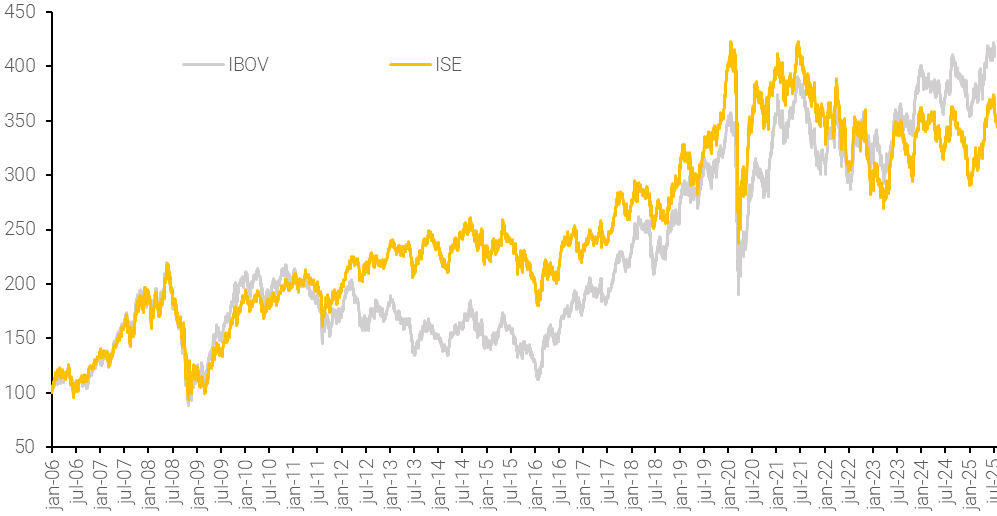 (1) O Índice ISE (Índice de Sustentabilidade Empresarial da B3) tem como objetivo ser o indicador do desempenho médio das cotações dos ativos de empresas com reconhecido comprometimento com o desenvolvimento sustentável, práticas e alinhamento estratégico com a sustentabilidade empresarial.