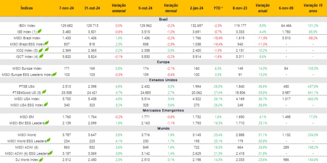 Índices ESG e suas performances