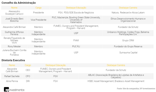 O Conselho de Administração da Arezzo possui 7 membros, sendo 3 independentes (43%) e, quanto à diversidade, notamos que possui 2 mulheres (29%) – Sra. Renata Vichi e Sra. Juliana Fonseca. Além disso, vale destacar que (i) a Diretoria da Arezzo conta com uma mulher (1 dos 3 membros) – Sra. Aline Penna; (ii) as mulheres representam mais de 61% da força de trabalho da empresa; e (iii) a Arezzo tem como meta estar entre as três melhores empresas de varejo do Brasil no Great Place to Work Women. Por fim, em 2019, destacamos que um comitê especialmente dedicado à sustentabilidade passou a orientar a atuação nessa área, reportando diretamente ao CEO, o que apreciamos.