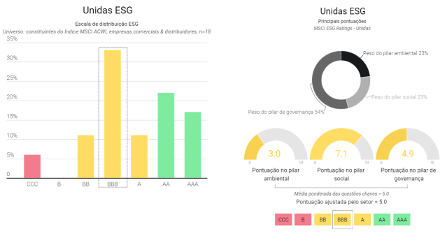 A Unidas possui uma classificação BBB pela MSCI ESG Ratings. Numa perspectiva global, a classificação BBB coloca a LCAM dentre os 28% das empresas com esta classificação no índice MSCI ACWI constituintes da categoria de empresas comercializadoras e de distribuição (18 empresas).