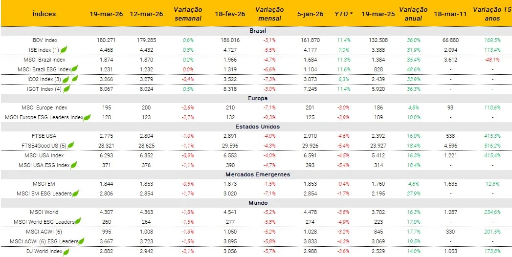 Índices ESG e suas performances