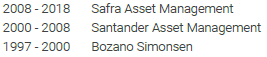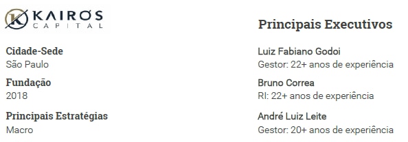 O time de investimentos da empresa é formado por profissionais bastante seniores, os quais possuem em média cerca de 20 anos de experiência de mercado. A gestão é baseada em um modelo de tomada de decisão consensual entre os gestores, que possuem histórico de atuação em várias classes de ativos e diferentes geografias.