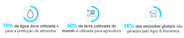 Além disso, esse é um setor chave para o sucesso da transição verde. Já que o setor é responsável por 70% da água doce utilizada no mundo, e 69% da terra cultivada do mundo é utilizada para agricultura. Além disso, 26% das emissões globais são geradas pelo Agro & Alimentos. E de acordo com o relatório de Emissões de Gases Nocivos da UNEP, o Agro & Alimentos deverá ser responsável por aproximadamente 30% da meta de redução de emissões estabelecida pela ONU.