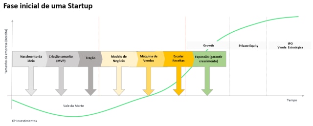 Early Seed e Late Seed: aqui temos os chamados “capital semente”, recurso destinado a bancar, estruturar e dar tração ao modelo de negócio da Startup. Assim como os “investimentos anjo” também temos alto risco atrelado, dadas as inseguranças inerentes dessa etapa da empresa, que ainda está no chamado “Vale da Morte” (zona que é conhecida pela falência da empresa em seu estágio inicial e que comentaremos com mais detalhes a seguir).
